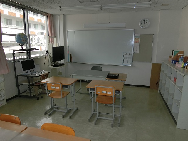 2階のフロアー西側に小学部、中学部、高等部の普通教室と、家庭科室、多目的室の計5教室があります。通学してくる児童生徒は、病気やケガをして赤十字病院に入院している子ども達です。入院中に居住地の学校で学習進度が進んでしまうことが心配な児童生徒が、安心して通学できる学校です。